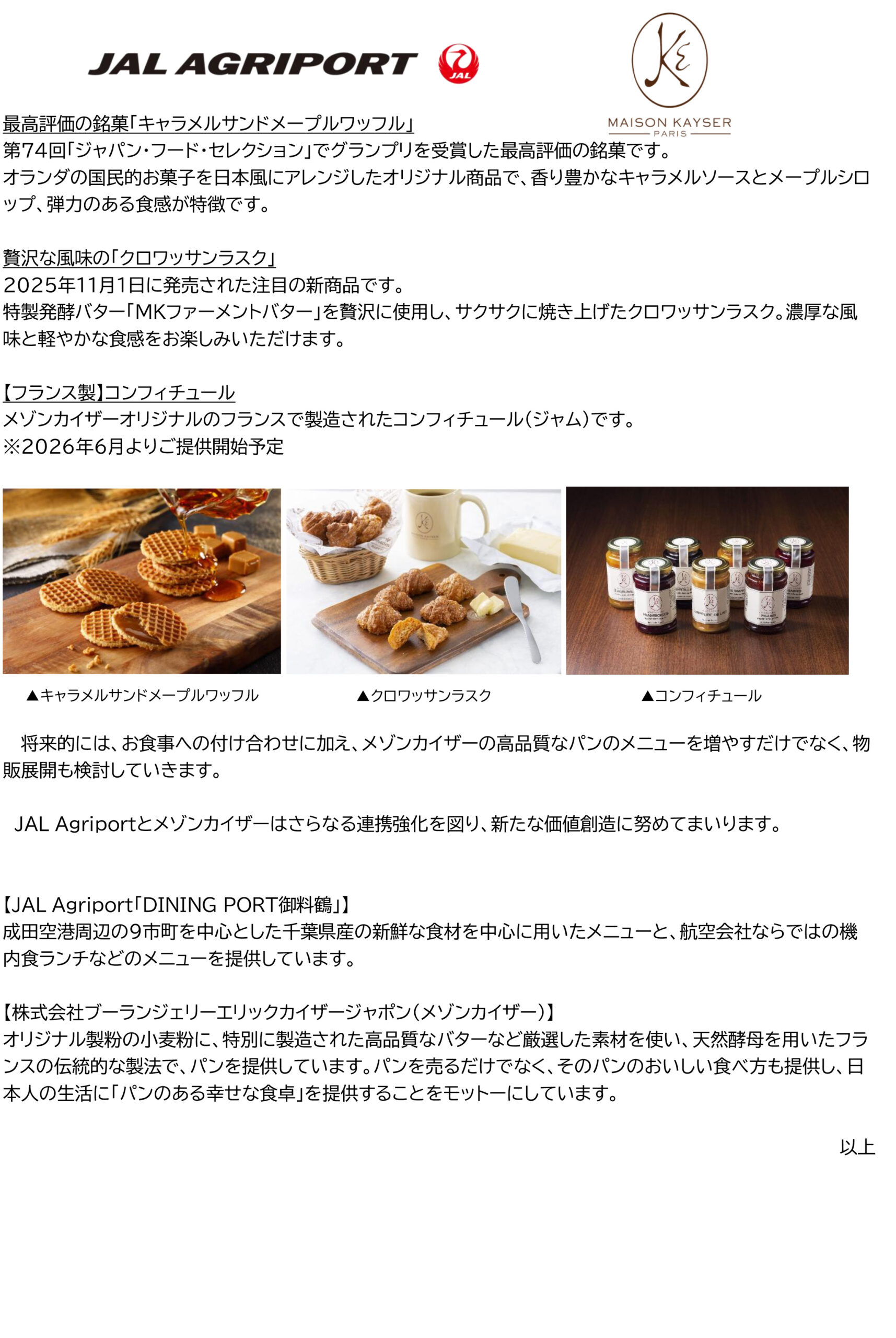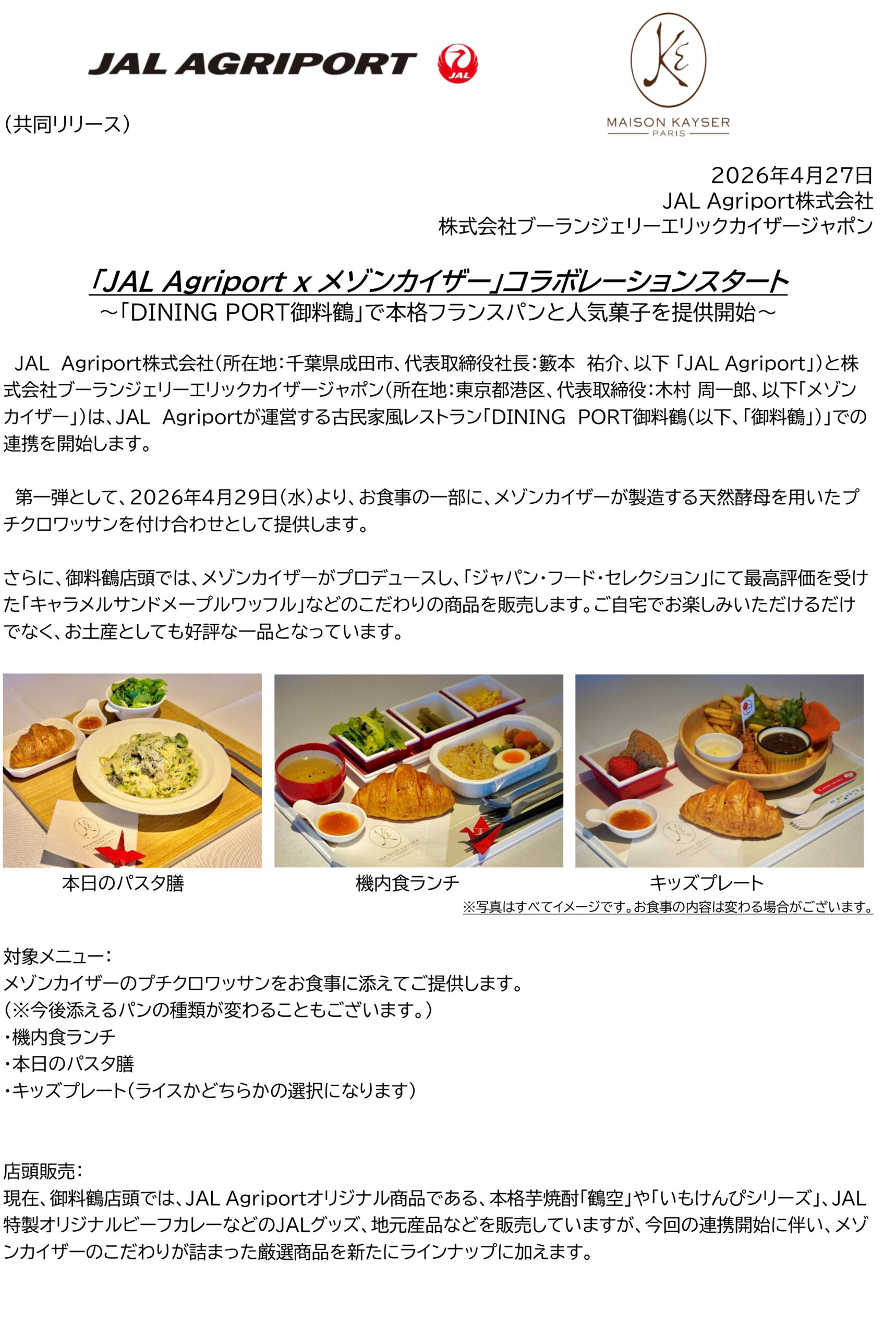 JAL×メゾンカイザーのコラボレーションレストランが下記の通りスタート致します。
